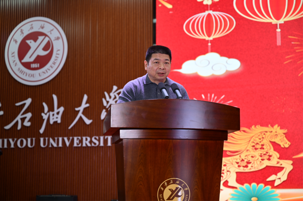 耿岭代表学院向出席晚会的各位领导、嘉宾、师生致以诚挚问候与热烈欢迎。他从党团建设、师资队伍、学科发展、教学科研、人才培养五个方面系统回顾了学院2025年取得的各项成绩,并向全体同学提出三点期望:一要坚定理想、脚踏实地,在知行合一中锤炼真才实学;二要全面发展、锤炼能力,在成长道路上奋力奔跑;三要珍惜光阴、奋发有为,以昂扬姿态迎接未来挑战。