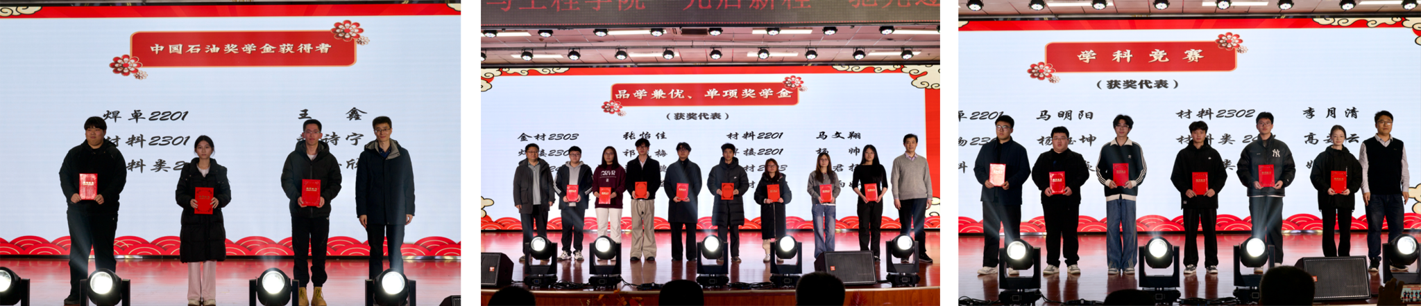 颁奖环节中,学院领导老师为国家奖学金、国家励志奖学金、中国石油奖学金、品学兼优奖学金、单项奖学金及省部级以上学科竞赛获奖者代表颁发了荣誉证书。