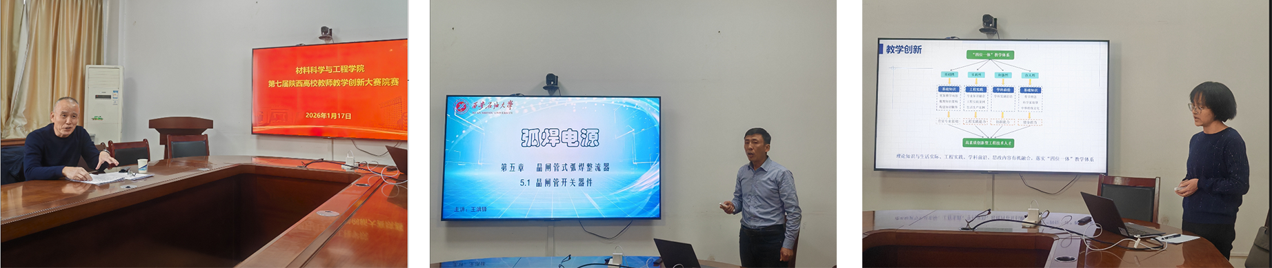 为深入贯彻新时代全国高等学校本科教育工作会议精神,扎实推进课堂教学革命,全面提升人才培养质量,做好第七届陕西高校教师教学创新大赛培育工作。1月17日,材料科学与工程学院在雁塔校区四号实验楼311、312会议室成功举办院内选拔赛。本次大赛以“激发教学创新活力,探索新工科育人模式”为核心,旨在搭建教师教学交流平台,推动教学理念与方法革新,切实提升育人实效。学院党委书记耿岭、院长刘德学全程出席并指导活动。