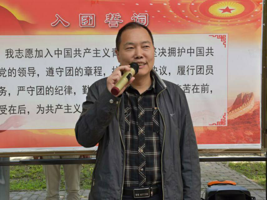 5月9日下午,我院“青春心向党·建功新时代”——纪念五四运动100周年示范主题团日活动在鄠邑校区逸夫工程楼旁举行。学院党委书记齐仲锋、学院团委书记和各年级辅导员老师,学院2018年新入团的团员,各班团支部委员代表、团员代表90余人参加了活动。