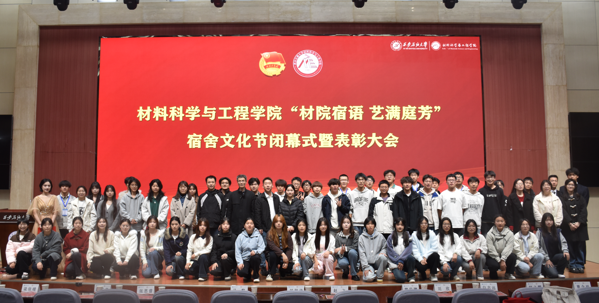 11月28日晚,材料科学与工程学院2025年“材院宿语·艺满庭芳 ”宿舍文化节闭幕式暨表彰大会在鄠邑校区弘石学术报告厅隆重举行。学院党委副书记屈敏佳、学生工作办公室副主任赵飞、各年级辅导员、团委和学生会主要负责人及四百余名学生代表参加。